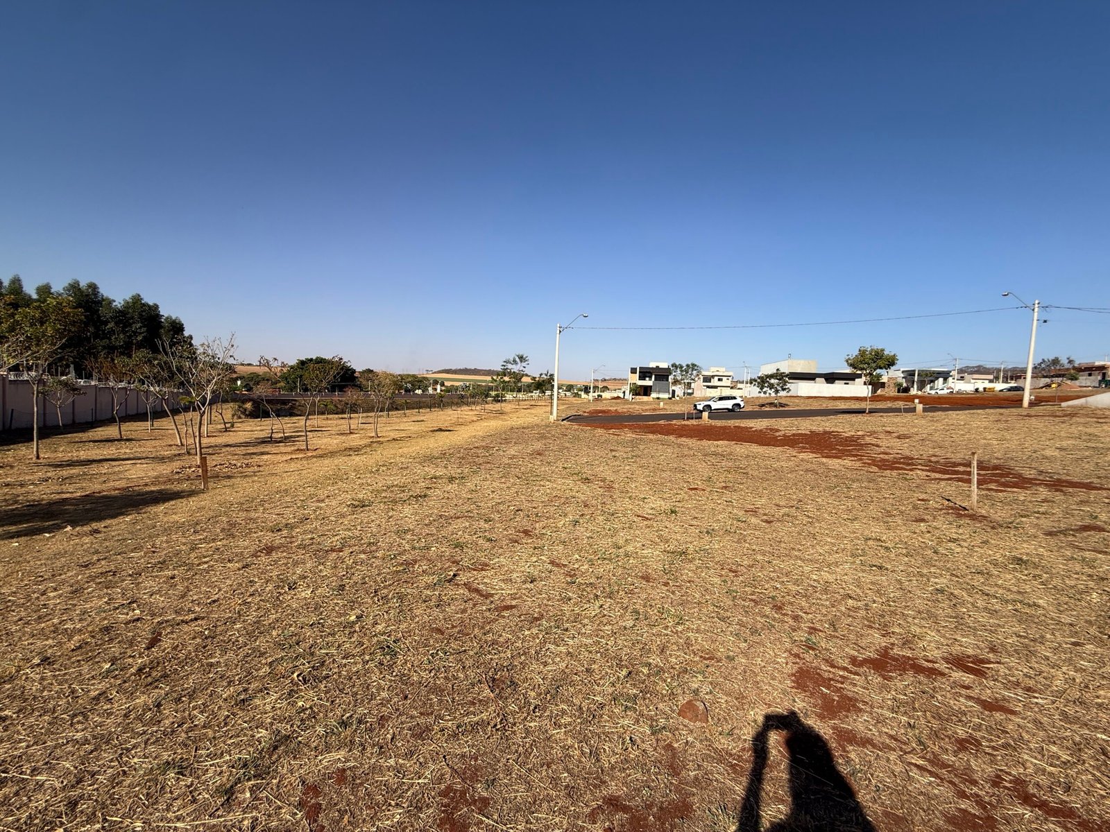 Leve declive lateral, acredito que menos de 1m de arrimo do lado direito. Ultimo lote da quadra, ao lado de um bosque interno do condomínio, ainda não há construções no entorno, nem o vizinho de fundos nem o da lateral esquerda. Estou solicitando a cartilha de obras para compartilhar com vocês também